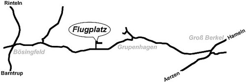 Unser Flugplatz (52 04' 00" Nord 09 11' 16" Ost) ist für Modelle bis 20 kg zugelassen und verfügt über eine ca 120 x 15 m große gemähte Rasenpiste. Die Flugzeiten für Segelflugmodelle sind ganztägig unbegrenzt nach den Sichtflugregeln (VFR) und Sichtwetterbedingungen (VRC).